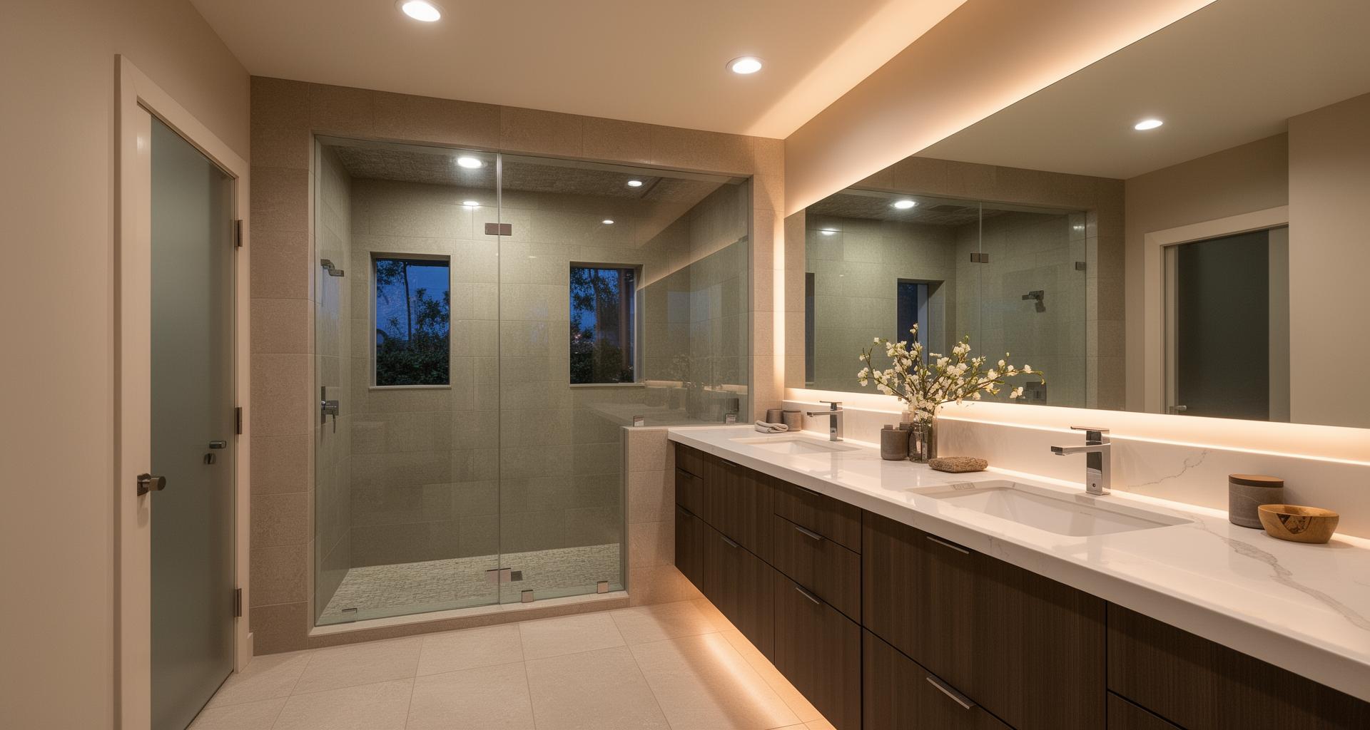 - Add task lighting at mirrors and dimmable ambient lighting for spa-like routines.